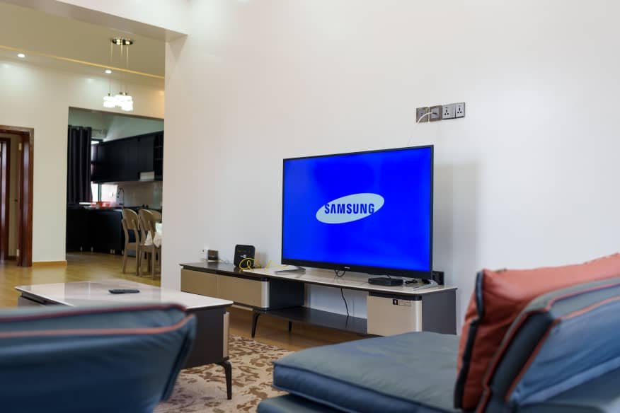 Modern 2-bedroom apartment for rent in Gisozi, Kigali. Located on the tarmac road near the city, it features 2 bathrooms, a living room, dining area, modern kitchen, and parking space.